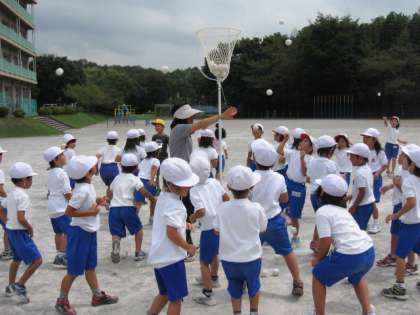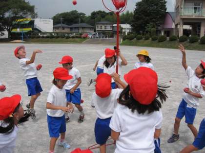 1・2年生 玉入れ練習 大差で紅組の勝利