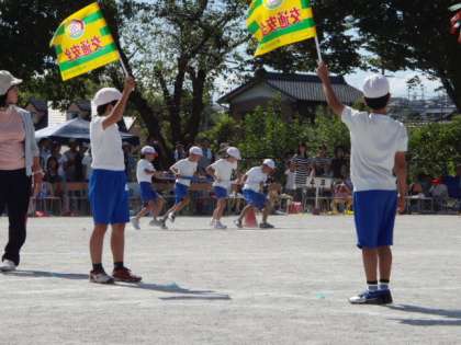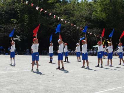 秋晴れの空の下無事運動会をとり行うことができました。どの子も日ごろの練習の成果を出しきって全力で取り組んでいました。青空の下でなびく旗がとてもきれいでした!みんながんばったね!