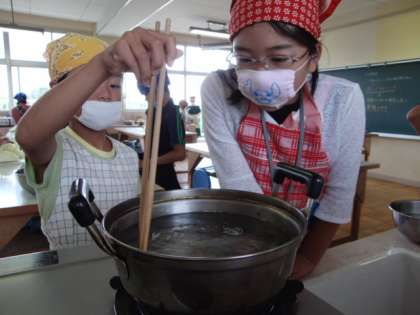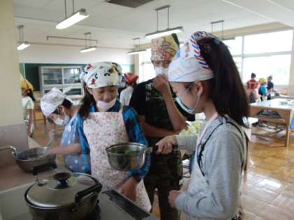 調理実習(5年2組)ゆで野菜のサラダ その3