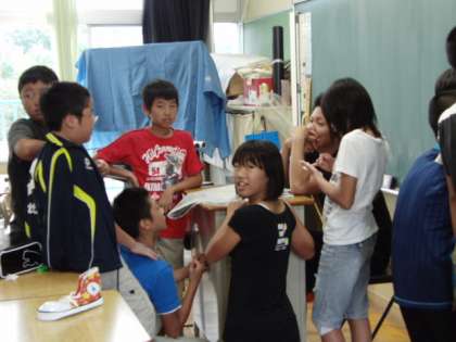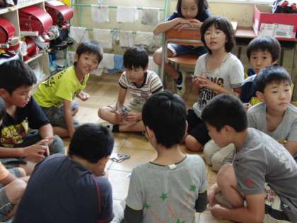 みんな、昼休みは何をして過ごしていますか?この時期は、「秋の長雨」と言って、梅雨時のように雨降りの日が続きます。廊下で走り回ったり、教室で暴れたりしないで、この写真のように、みんなで楽しく、仲良く遊びましょう!