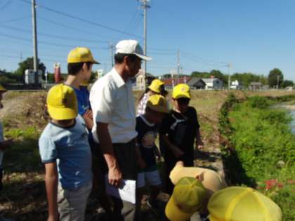 理科の「流れる水のはたらき」の学習で、内津川の観察に行きました。教科書で学習した内容を、実際の現場で見てみると、理解が一層深まります。神屋小学校の周りには、こうした自然にあふれ、恵まれていますね。