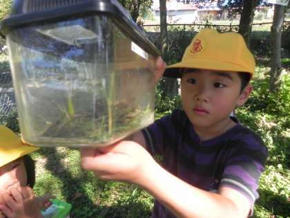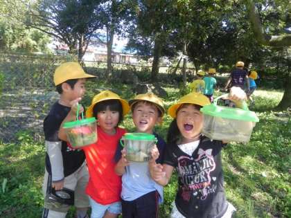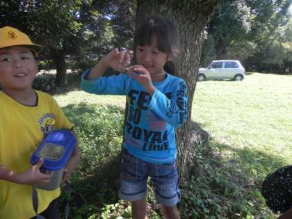 20分放課に、子どもたちが第2運動場で虫を探していました。「コオロギのあかちゃんがいたよ」「バッタもみつけたよ」