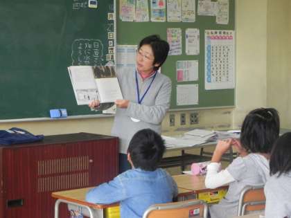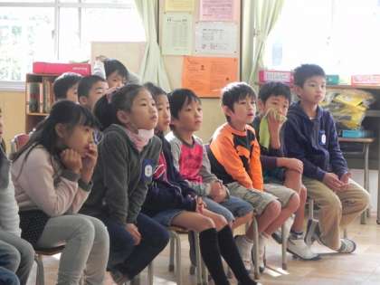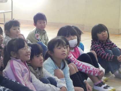 PTAの読み聞かせをしていただいています。どのお母さん方も、すてきな本、楽しい本を選んで読んでくださり、大人が聞いても感動します。子どもたちも目を輝かせ、身を乗り出して聞いています。