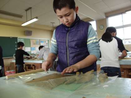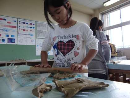 図工の時間に粘土で「曲げてねじって」という作品を作りました。人は土に向かうとだまって作品作りに集中するようです。さて、どんな作品ができたかなぁ?