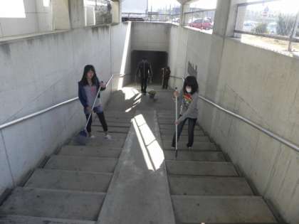 11月の地下道清掃を行いました。今回は、6年生4名、PTA補導部から2名、職員4名の計10名で行いました。落ち葉や石などがたくさんありましたが、参加したみなさんのおかげで、とてもきれいになりました。