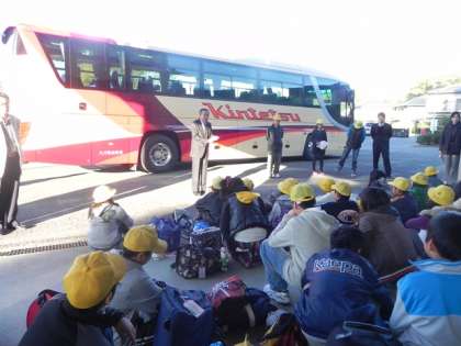 6年生が修学旅行に出発しました。協力して楽しい思い出ができるといいですね。