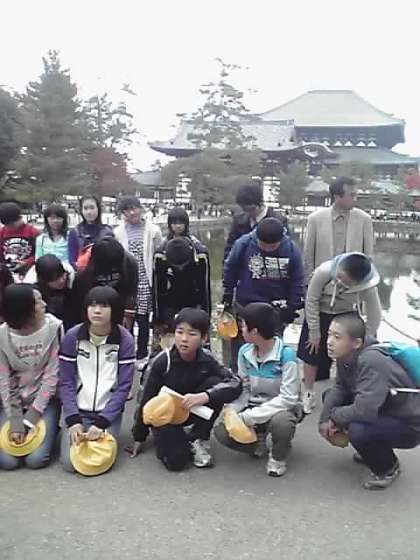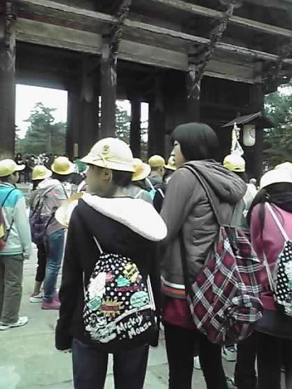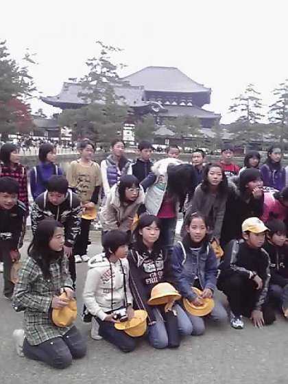 予定より30分ほど早く東大寺に着きました。鹿のまねをして、おじぎ・・・?