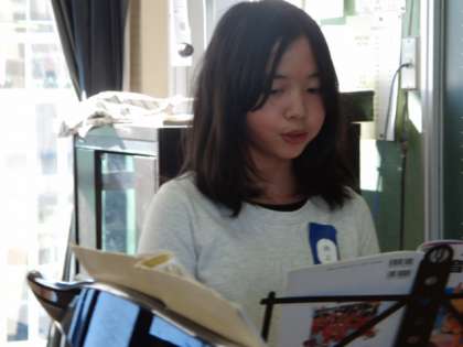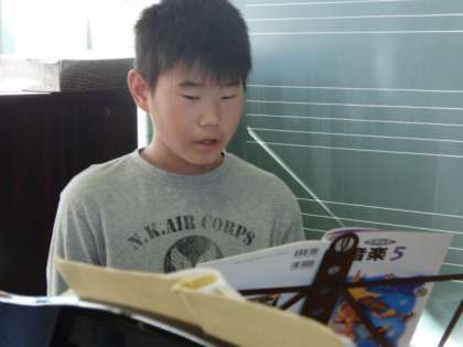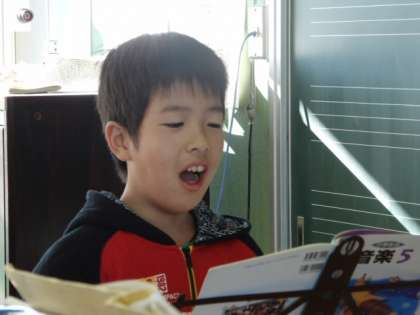 今日は歌のテストです。みんなとても素敵な声をしていますが、テストの時はちょっぴり緊張しています。お腹から声を出して、気持ちよく歌いましょう!