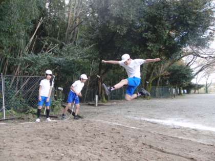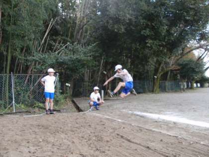 走り幅跳びの様子です。できるだけ遠くに飛ぶには、どうしたらいいかな?それぞれが考えながら練習する、それが体育の勉強です。