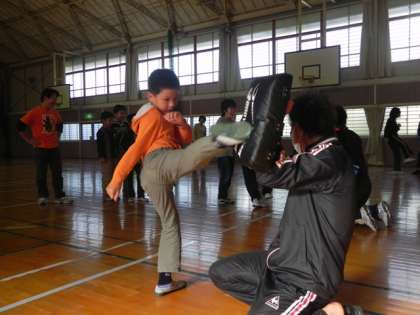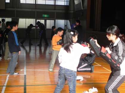 11月27日(土)に、ふれあい教育セミナーとして「キックボクシング」を行いました。初めての人がほとんどでしたが、講師の方がとても分かりやすく教えてくださり、パンチにキックと、楽しみながら練習できました。