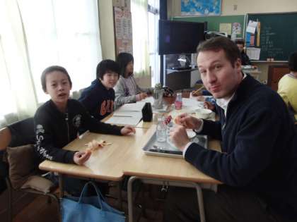 5年1組は、ローリエ先生といっしょに、給食も食べました。どんなお話をしたのかな?