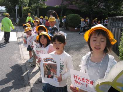今週はずっと雨が降ったため、あいさつ運動ができませんでした。やっと雨もあがって、あいさつ運動ができました。校門周辺では、元気なあいさつがあふれ、気持ちの良い朝になりました。なんと言っても子ども達の笑顔が一番です。(野崎)