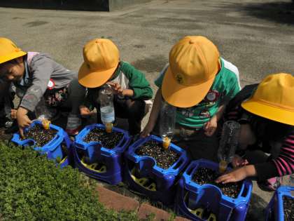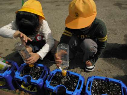 あさがおの種をまきました 1年 公開日 2011/05/16 更新日 2011/05/13 1年生 雨が上がった今日、あさがおの種をまきました。 指で穴をあけて、種をまいて、土をかけました。 どんな色の花が育つか、楽しみですね。
