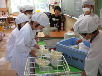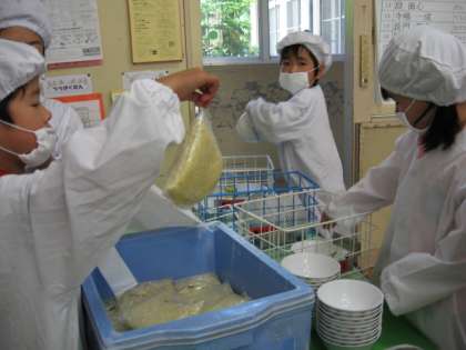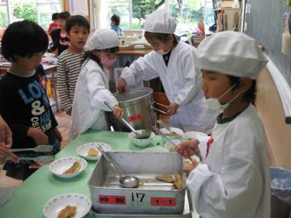 給食の配膳もかなりうまくできるようになってきましたよ。