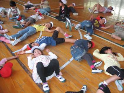 みんな元気いっぱいです。汗をかいたのでちょっと休憩。