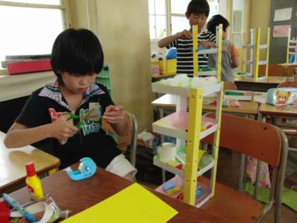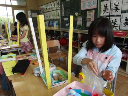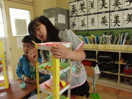 ネットで授業参観(図工)その1 公開日 2011/05/25 更新日 2011/05/25 4年生 今 日は4年2組の図工です。こちらも、「コロコロ・コロガラート」がだいぶ完成に近づいて来ました。友だちの良いところを上手にまねして、自分の作品にも取り入れてみましょう。