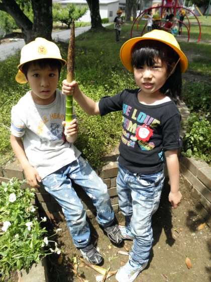そのあと、神屋公園まで行き、公園の中の植物を探しました。 途中の道でたけのこ発見!!