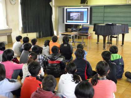 4年・5年・6年生が、川口先生を特別講師として、東日本大震災の特別講義をうけました。川口先生は、昨年10月にボランティアとして被災地を訪れ、貴重な写真を撮ったり、被災者の方々の生の声を聞いたりしてみえました。