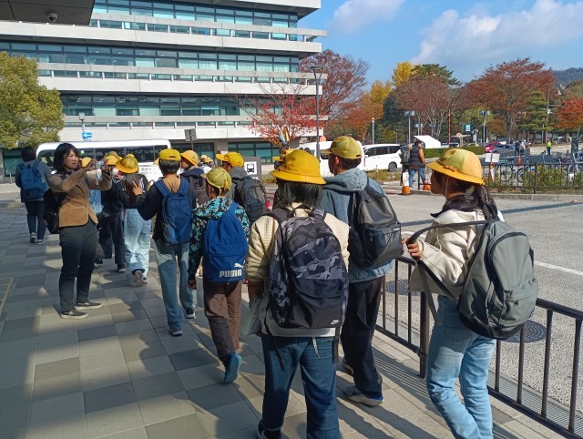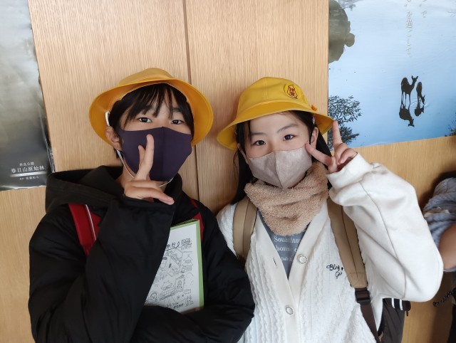 奈良公園に到着し、鹿の多さにみんなテンション上がっています。