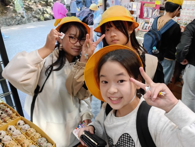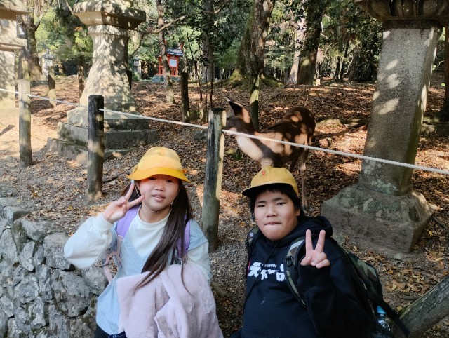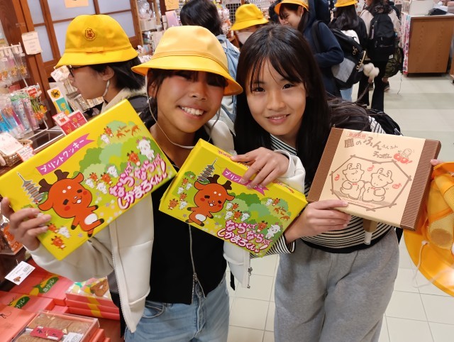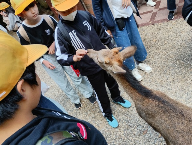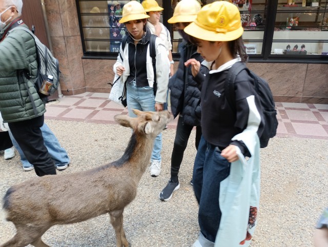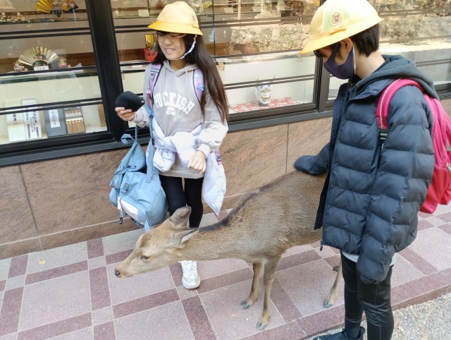 お土産を購入し、鹿せんべいをあげました。キャーキャー言いながら楽しくあげていました。