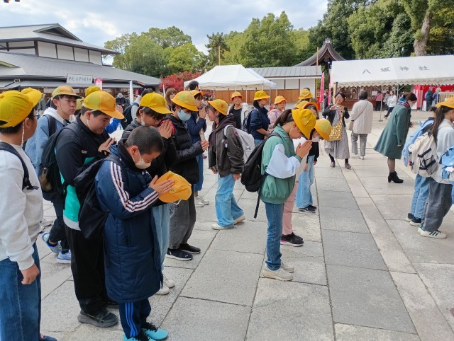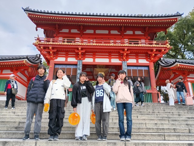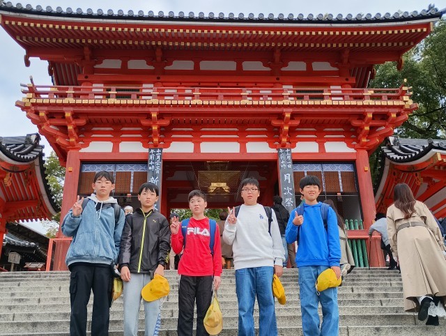 八坂神社見学が終わり、修学旅行の行程が終わりました。神屋小学校に向けてこの後出発です。