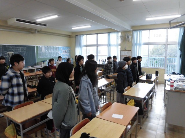 はじめに校長先生のお話を聞きました。昨日あった地震や一昨年の能登の地震の例から「答えのない問題について考える」というお話でした。どうしたらよいかお話の途中で子どもたちも近くの人と話し合って考える時間がありました。