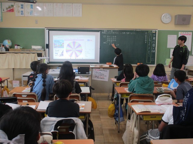 3時間目に、1年生は国語、5年生は算数の学習をそれぞれ行っていました。