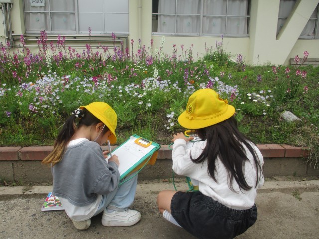 4月15日(水) 授業の様子 公開日 2026/04/15 更新日 2026/04/15 お知らせ 2年生は、外で生活科「校ていで 春を さがそう」の学習をしました。子どもたちは、咲いている花などのスケッチに取り組んでいました。6年生は、書の時間に毛筆で自分の名前を書きました。「はね」「はらい」「とめ」を意識しながら、筆を走らせている子もいました。 1年生 2年生 3年生 4年生 5年生 6年生 入学式 卒業式 運動会 校外学習 修学旅行