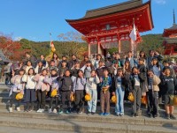 奈良公園に到着し、鹿の多さにみんなテンション上がっています。
