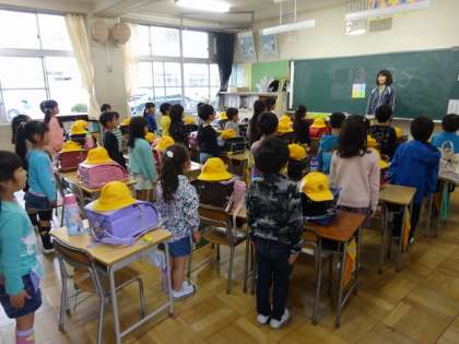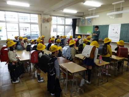 元気よく挨拶をして下校の準備をしていました。