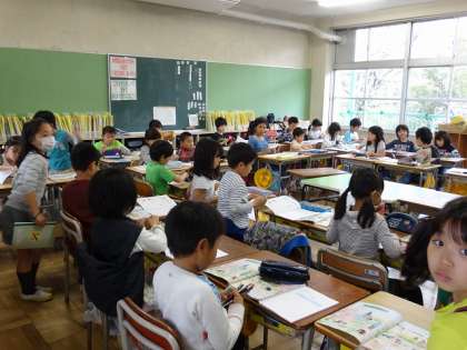 生活科で校内を探検する準備をしていました。