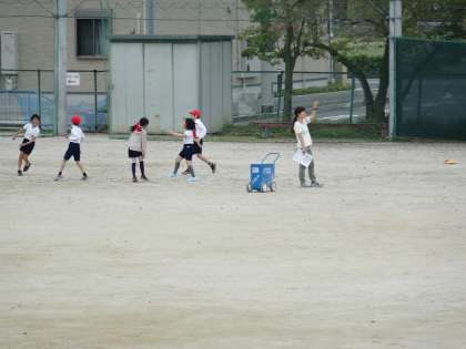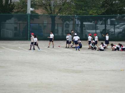 体育の授業で走る練習をしていました。