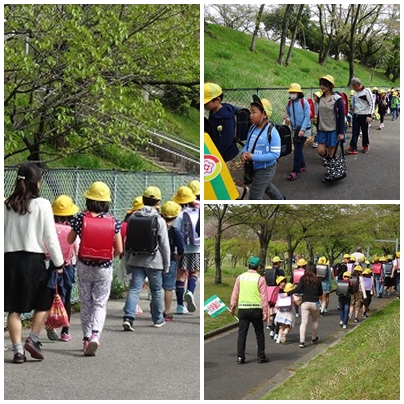 今日新しい通学班ごとに集まって交通安全について話し合いをしました。その後一斉下校で帰り、担当教師が通学路の安全を確認しました。