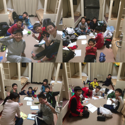 部屋での今日の反省会。皆んな元気です。ケガも体調崩した子もいません。ご安心ください。