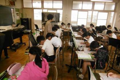 2組は音楽の授業で、「静かに眠れ」を学習していました。