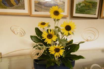 2F廊下にひまわりの花が生けてあります。ついこの間までの猛暑が・・・