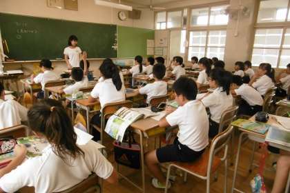 社会の授業で「米の盛んな地域」先生の問題に答えていました。