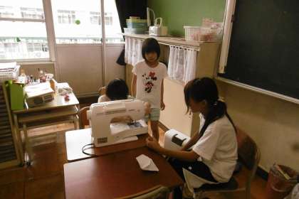 6組はミシンで、自分の雑巾を縫っていました。