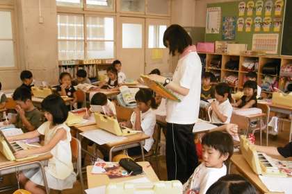音楽の授業で「どんぐりさんのおうち」の鍵盤ハーモニカのテストをしていました。