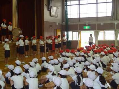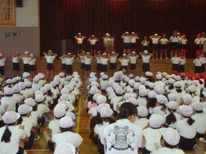 運動会練習もそろそろ佳境に入ってきました。今日は、雨天のため体育館で応援練習を行いました。応援団が中心となって、紅白に分かれて練習を行いました。応援団の中には、突然の団長が欠席となったため、急遽団長を引き受けて、やり遂げた子がいました。突然の大役でも、大きな声を出してやり遂げ、見事でした。