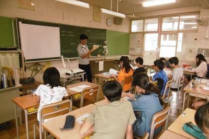 1組は国語の授業でコンピュータ室で調べ学習をしていました。