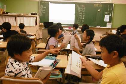 1組2組ともに算数の授業で2の段の九九を学習していました。