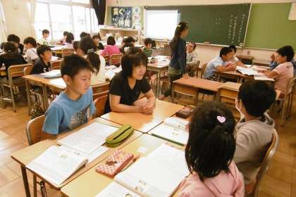 1組は国語の「明日をつくるわたしたち」で班で話し合いをしていました。