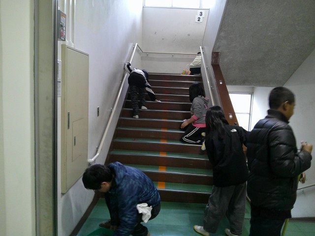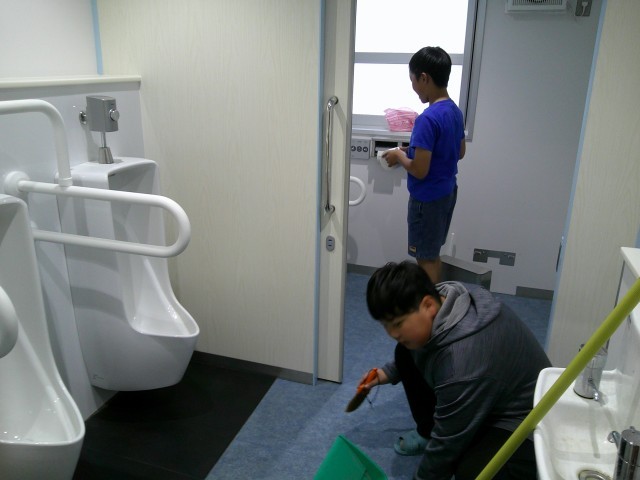 卒業間近となった6年生が、学校中の手洗い場を掃除してくれました。流しのステンレスを磨いたり、周辺の壁や床を拭いたりしてくれました。