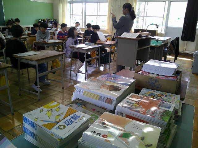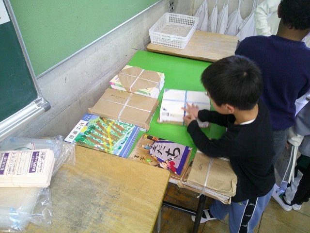 教室では、新しい担任の先生の自己紹介を聞いたり、新しい教科書をもらったりしました。