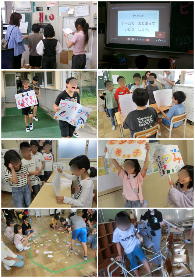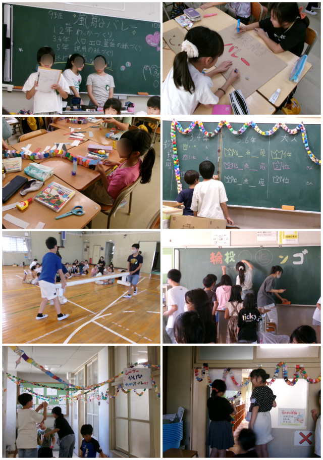 看板づくり、宣伝用の大きなちらし、教室の輪飾りやルール説明のセリフ、小物、etc.etc...。全て子どもたちで作り上げました!