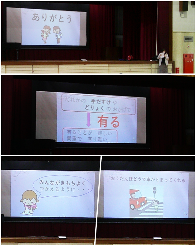 その後の校長先生のお話では、「ありがとう」について教えていただきました。
