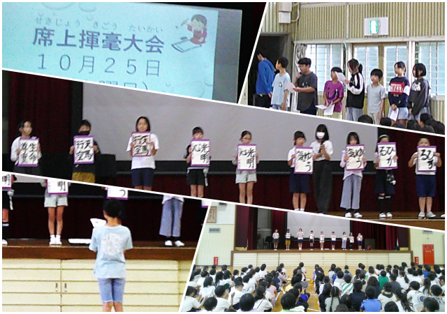 朝会のあとには、小野小学校で行われる、「席上揮毫大会」に参加する選手たちを励ます会がありました。