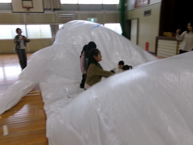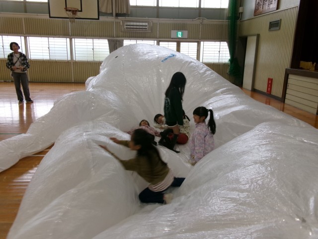 体育館には、ビニールで作った大きなくじらも登場!