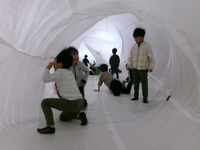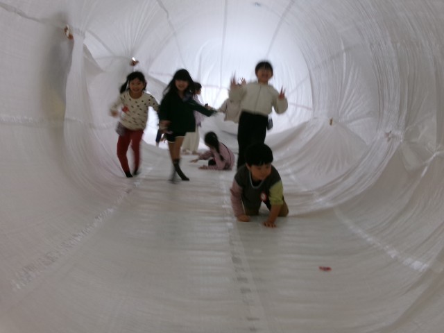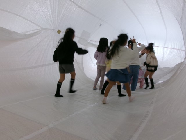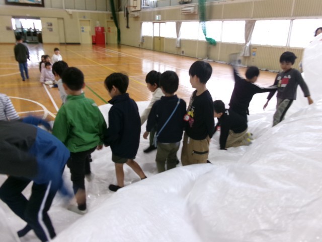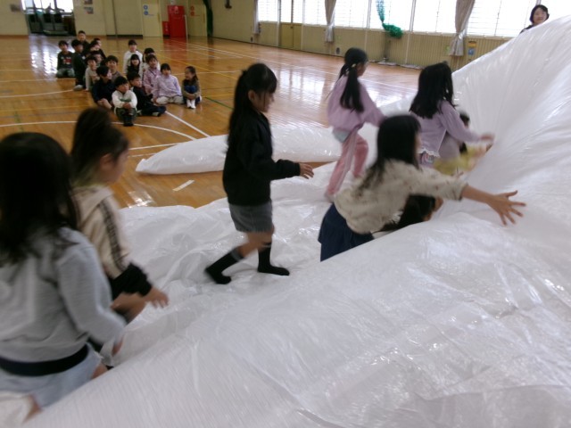 子どもたちはくじらの背中にのって、まるで物語の世界に入ったように楽しんでいました。